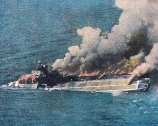 Jedyny sukces operacji Seelowe - nowoczesny lotniskowiec Royal Navy idzie na dno.