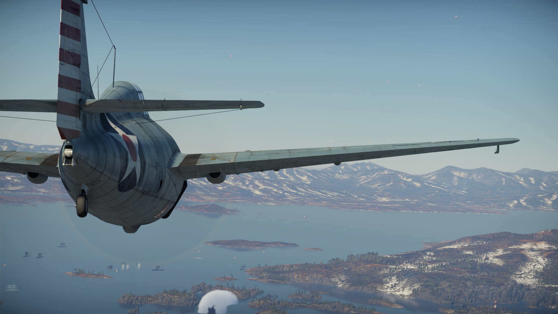 Wrogie niszczyciele otworzyły do mnie ogień. Miałem dwie możliwości. Lecieć za linie wroga i liczyć, że mnie nie zestrzelą. Skręcić nad flotę wroga i zaatakować, albo polecieć nad górami.... Wybrałem to ostatnie...