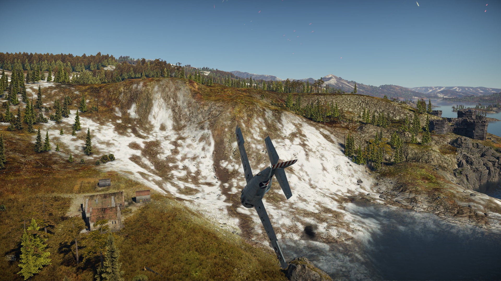 A właśnie to zanurkowanie i wyjście było powodem stworzenia tego opowiadania... Przez cały lot, od rozpoczęcia nurkowania, śmignięcie miedzy drzewami, aż do zanurkowania we fiord bałem się, że zaraz uderzę w ziemię... że zbyt mocno poszedłem w dół... że Wildcat jest zbyt ociężały... ale dałem radę