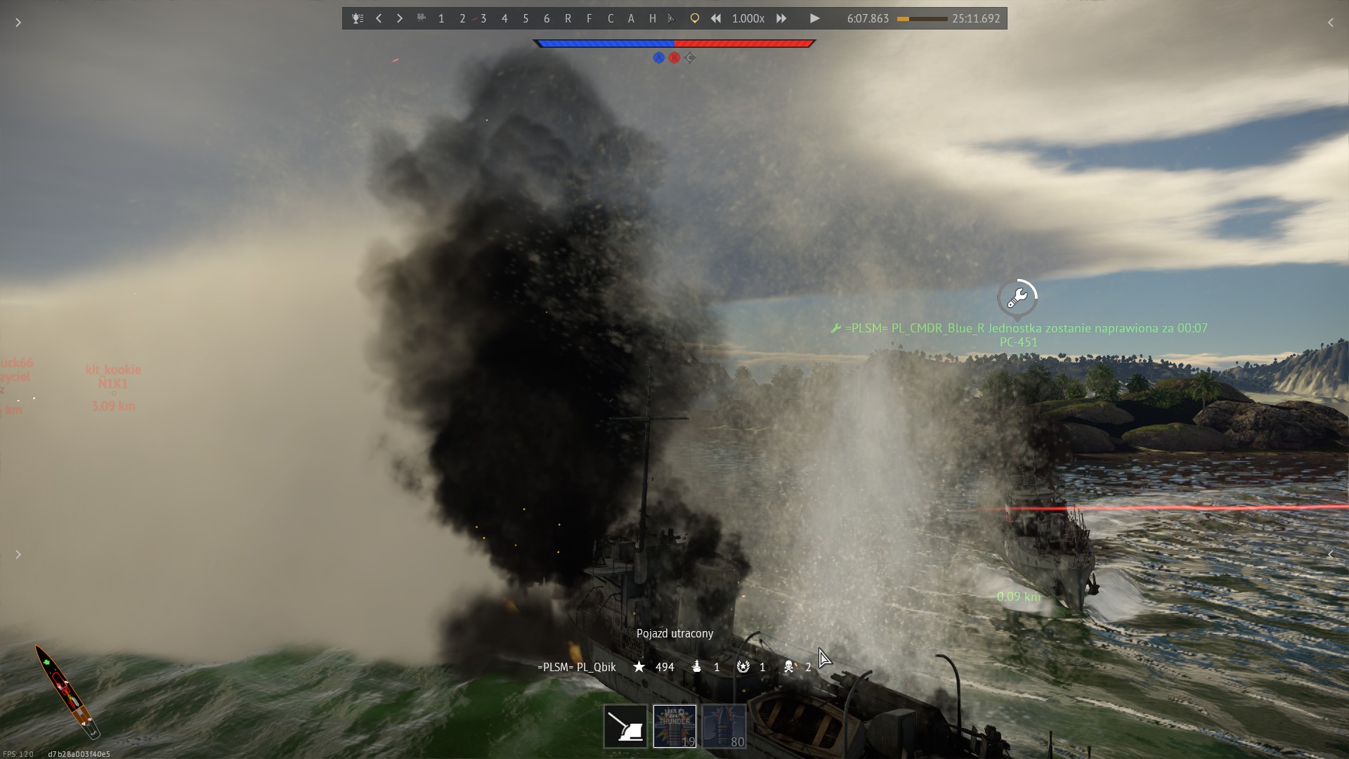 Niestety, było „o jeden pocisk za późno”. Kolejna salwa dopadła okręt Qbika i „załoga straciła przytomność”…