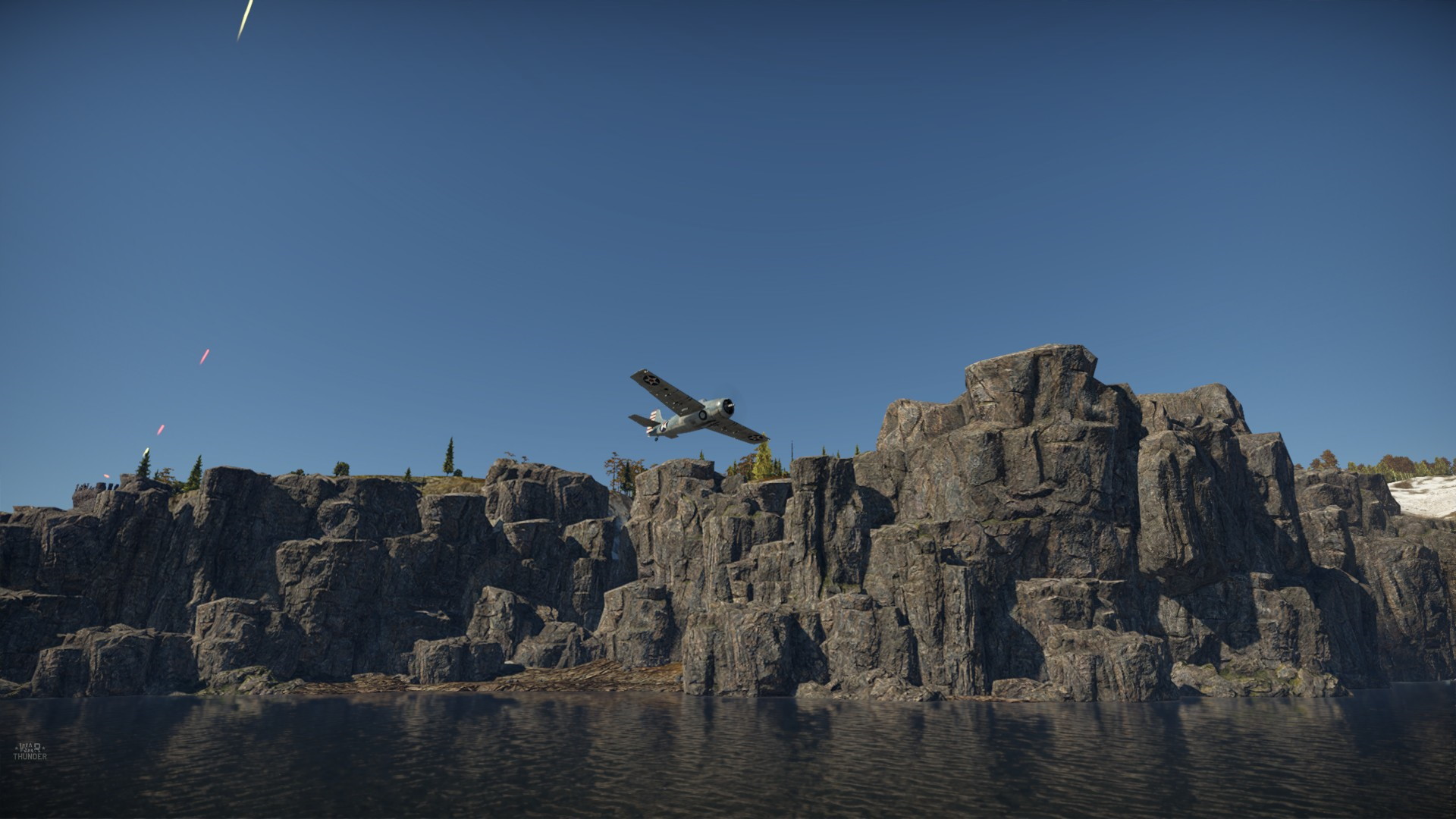 A właśnie to zanurkowanie i wyjście było powodem stworzenia tego opowiadania... Przez cały lot, od rozpoczęcia nurkowania, śmignięcie miedzy drzewami, aż do zanurkowania we fiord bałem się, że zaraz uderzę w ziemię... że zbyt mocno poszedłem w dół... że Wildcat jest zbyt ociężały... ale dałem radę :)
