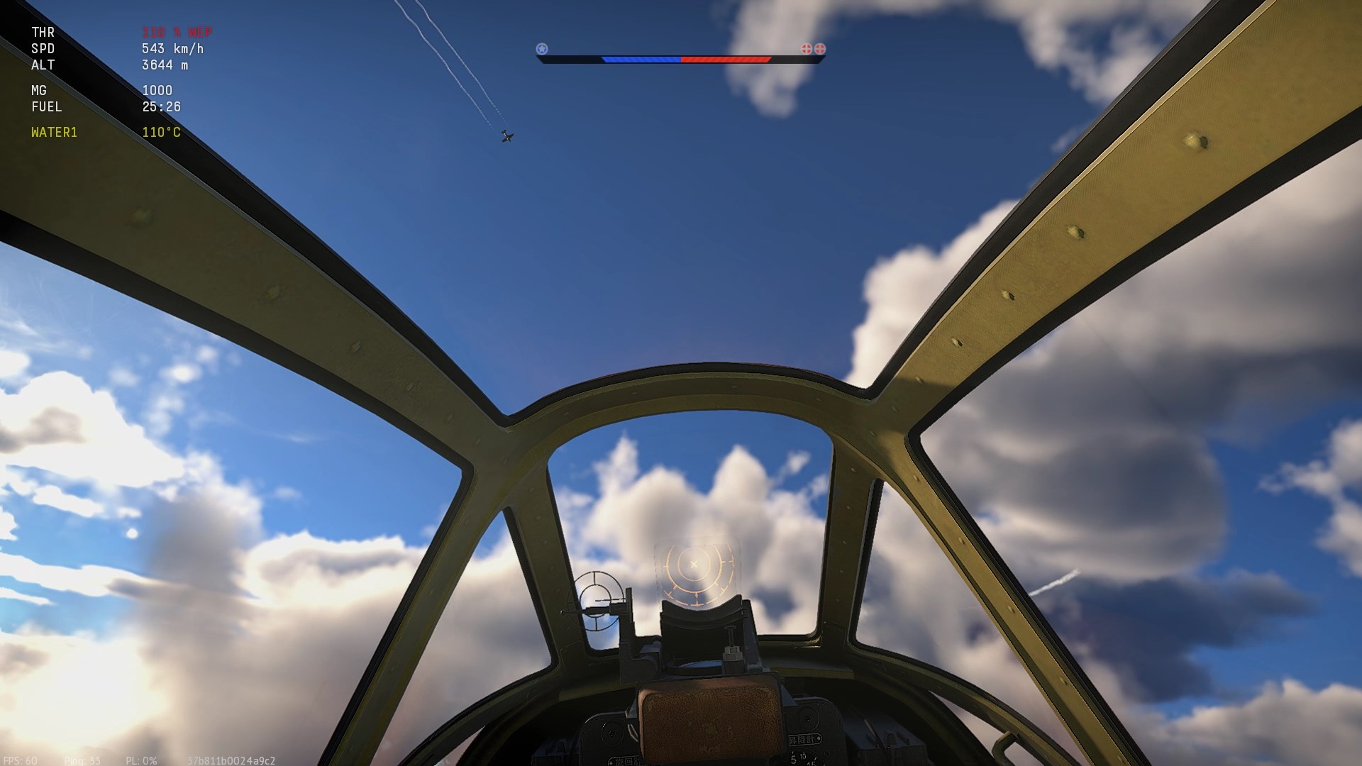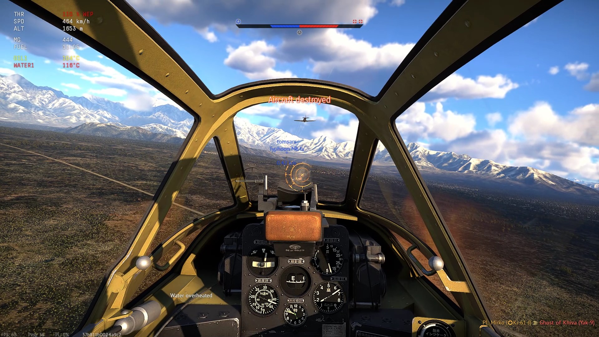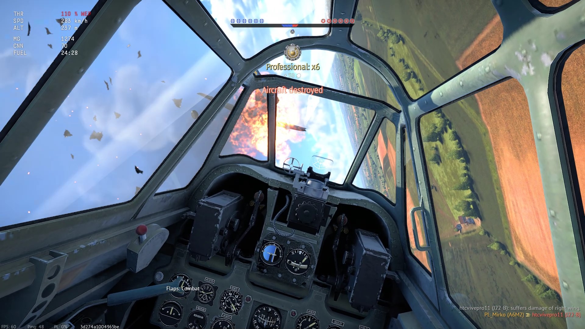 Został trafiony przeze mnie prawdopodobnie w "zadek" z "cienkich". Napis "Hit", (3:07), rozbłysk na stateczniku pionowym i dwa obłoczki dymu.