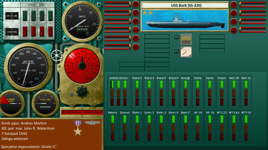 -Wreszcie znalazły się fundusze - powiedział komandor porucznik - Sami wiecie ile było problemów z torpedami Mark 14... I jakby przed wojną były fundusze i można było przeprowadzić porządne próby, to byśmy nie tracili dwóch lat wojny na uzyskanie porządnego sprzętu do walki. Wróćmy do zadania. 18 listopada musicie być na pozycji około 1500 mil stąd. Kiedy chcecie wpłynąć, komandorze podporuczniku?