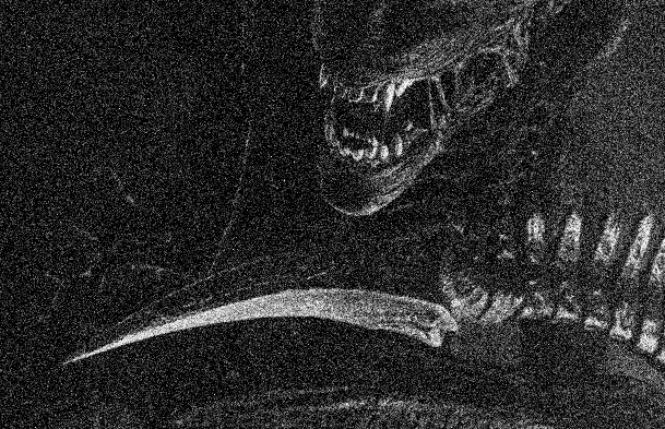 Korzystając z ciszy pakuję jedno jajo do plecaka i wycofuję się do skanera, co by przebadać to je…ane jajo. Za plecami słyszę hałasy – odwracam się... i za mną materializuje się on. Obcy.