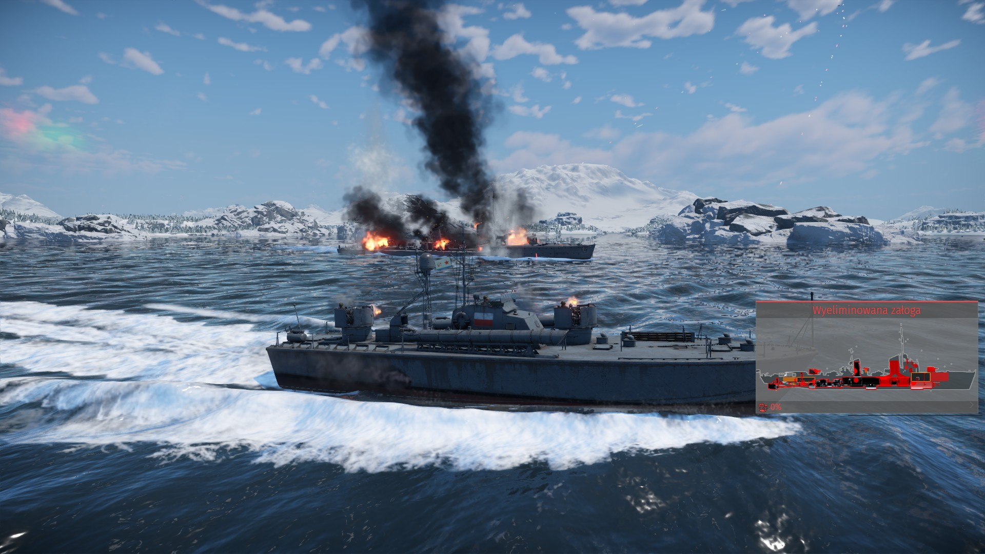Jednocześnie strzelając się z kutrem, odpaliłem torpedy.... Ale wróg dostrzegł mój manewr...