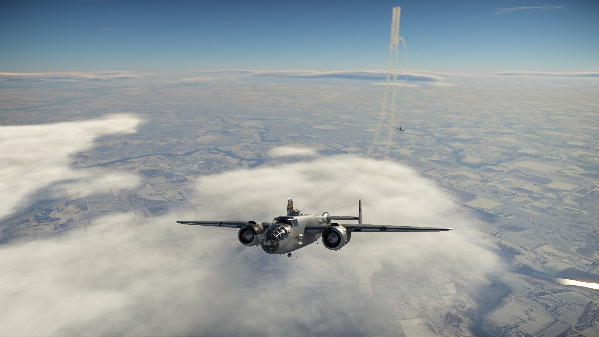 Cały jednak czas inicjatywa była w rękach wroga i większość pocisków jednak lądowała w naszym bombowcu, a konkretniej w silnikach. Pierwszy poddał się prawy silnik, zaczynając się krztusić, wypluwając z siebie warkocz dymu. Przerywał, ale pracował... zaraz potem także i lewy silnik zaczął odmawiać posłuszeństwa i padł jako pierwszy...