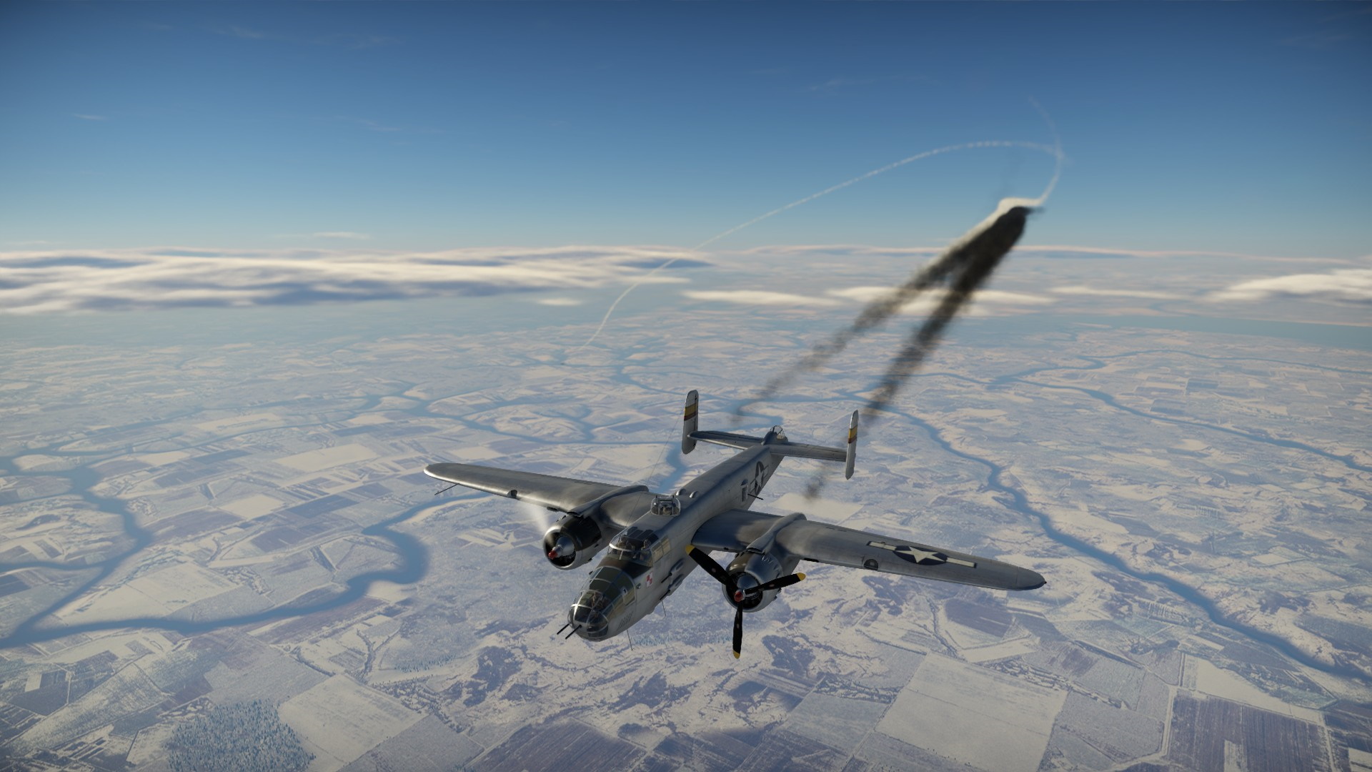 Prawda okazała się bardziej korzystna. Wrogi pilot został trafiony przez Mike'a. W pojedynku B-25 kontra Bf109, to niebieski bombowiec triumfował.