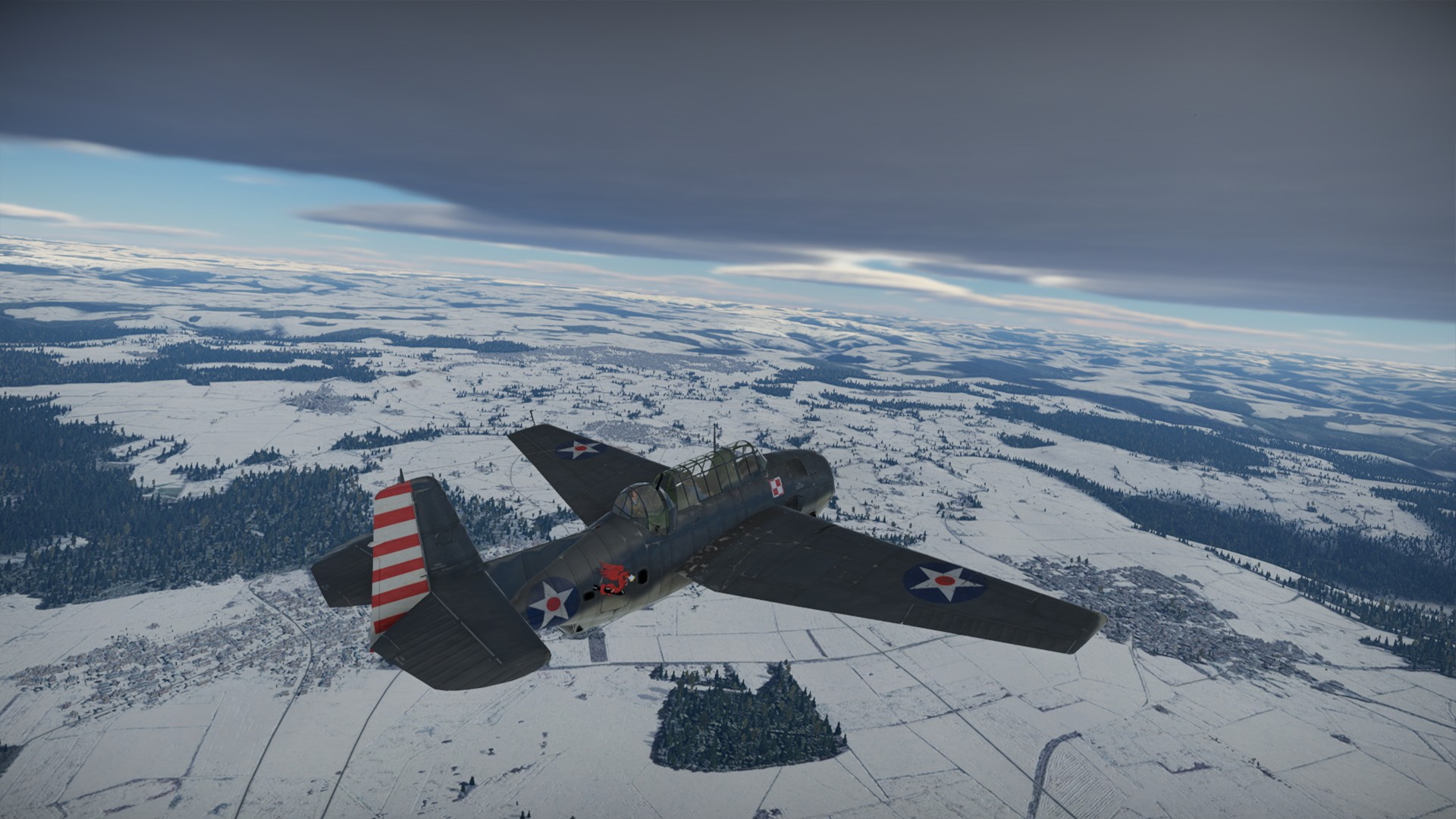 Przewaga prędkości wroga, spowodowała, że na chwilę znalazł się przed nami. Nie mogłem przepuścić tej okazji i zaatakowałem go z KMów, niestety, ociężałość TBF nie pozwoliła na więcej efektu, niż pokazanie wrogowi, że jesteśmy zdeterminowani walczyć.