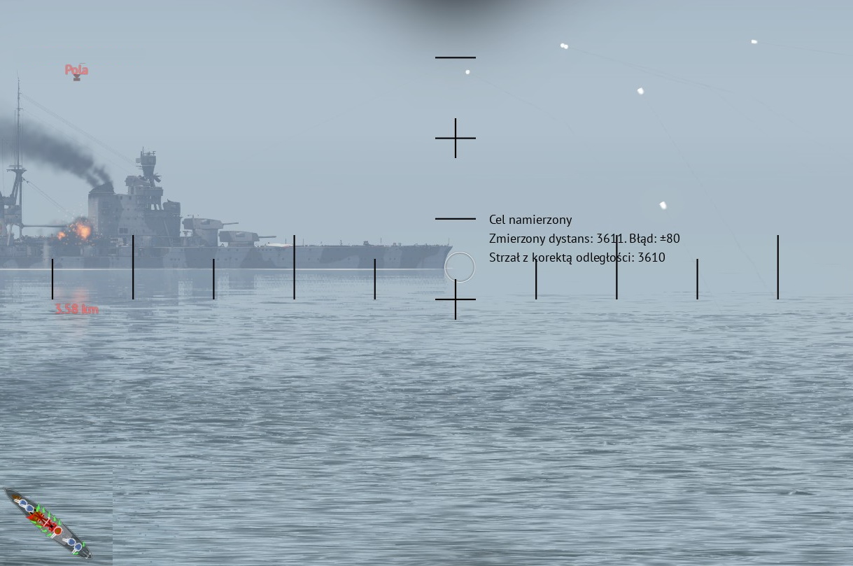 Za nim dostrzeliśmy kolejny okręt wroga... Krążownik, który po kolizji ze skałami, dalej prowadził ogień...