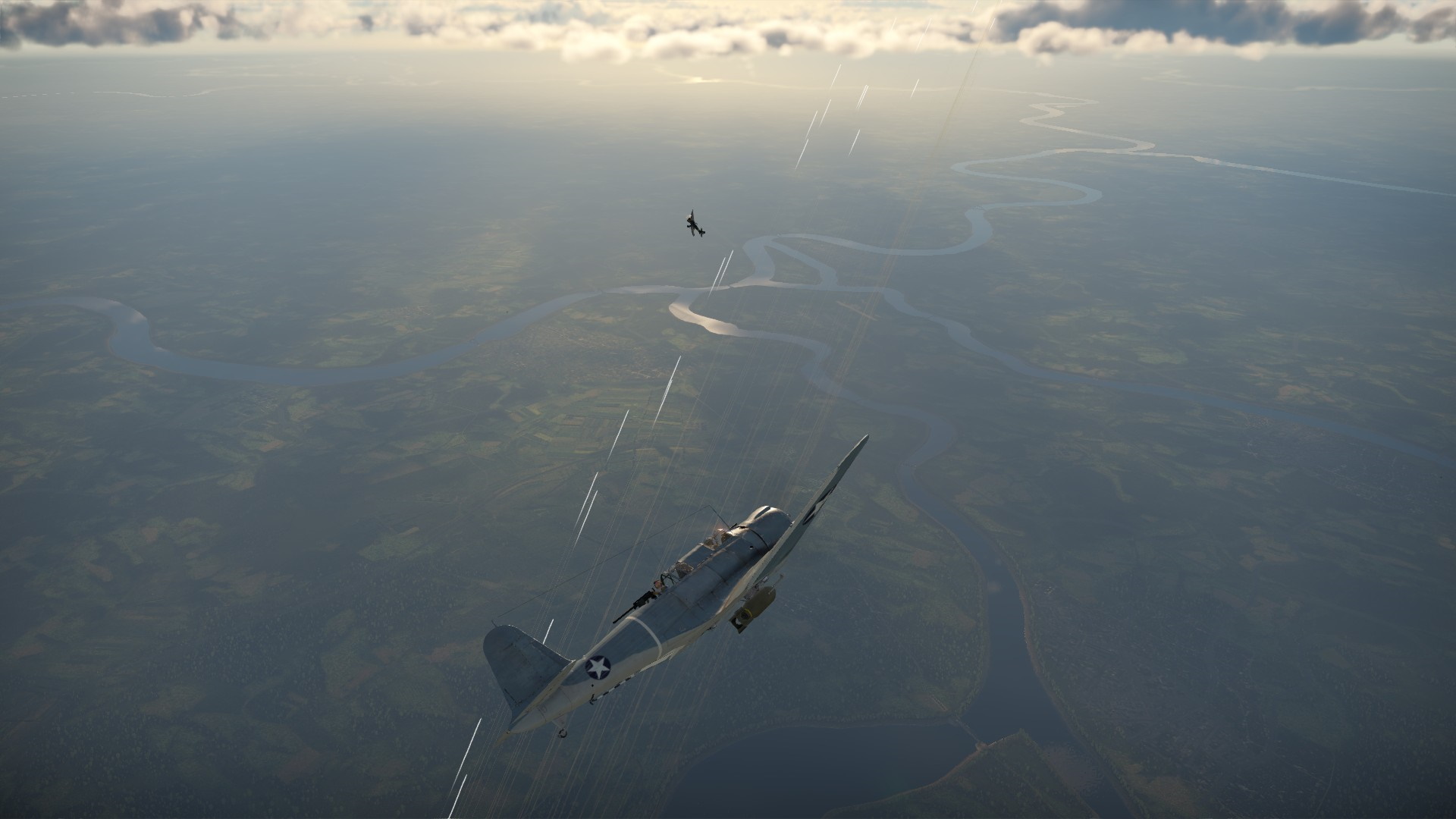 O ile ten "z przodu" tylko śmignął i wpadł na nasze myśliwce, to ten drugi stanowił problem.. Przeciwko naszemu jednemu karabinowi obsługiwanego przez Mark'a, z jego strony leciał grad ołowiu.