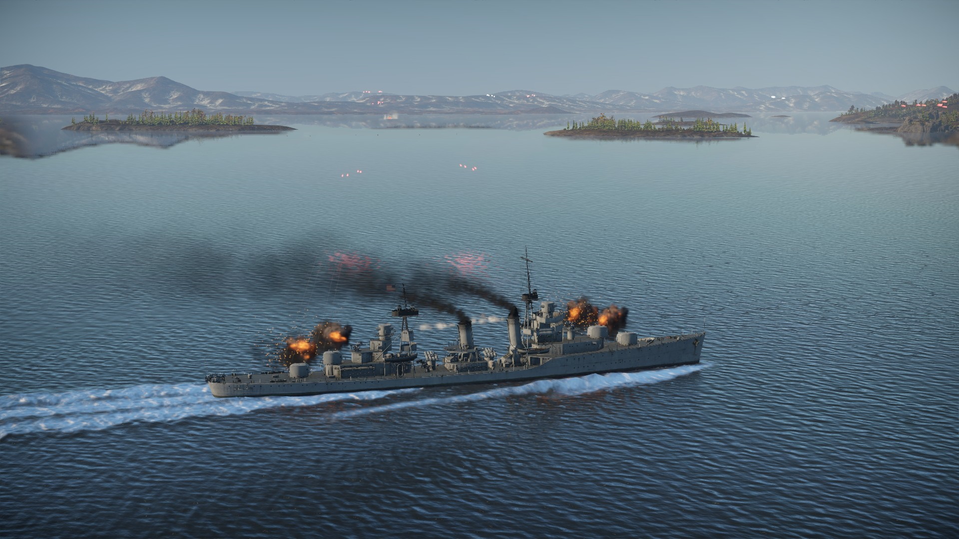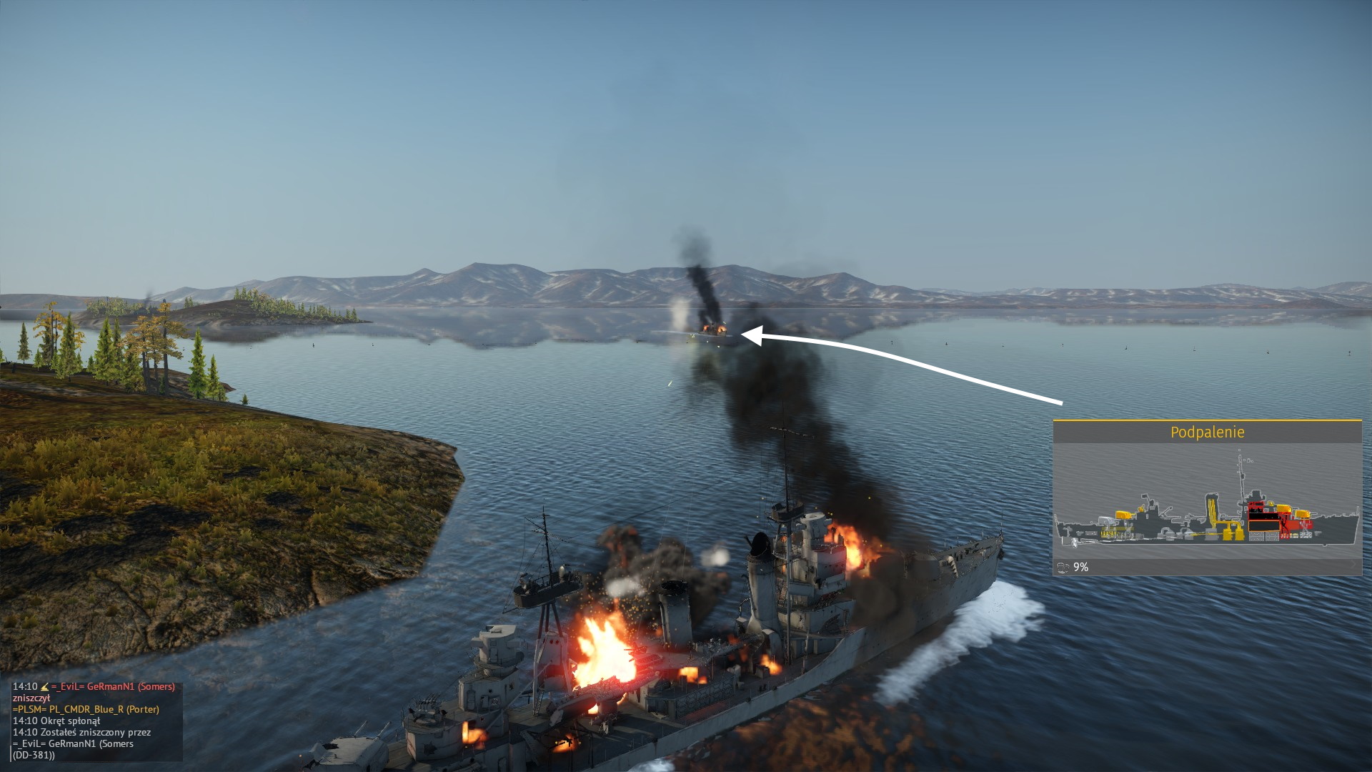 Wróg też wykonał zwrot pokazując wszystkie działa. Salwy rozrywały pokłady obu okrętów... I niestety, lepsza celność T14 dała o sobie znać, posyłając USS Finka na dno...