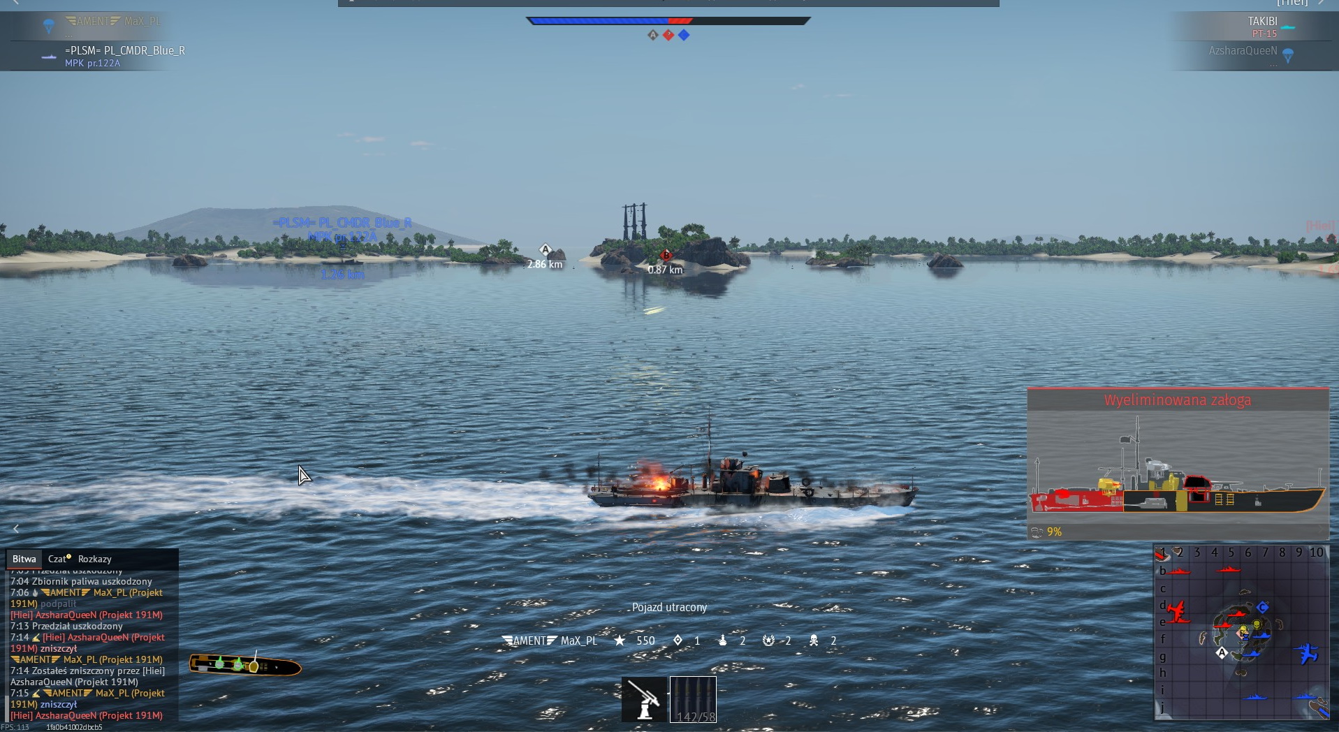 Choć BoatBois zajęli B, to szybki atak Finka wyeliminował jeden z ich kutrów (Pietrow strzela jak zawsze celnie)...