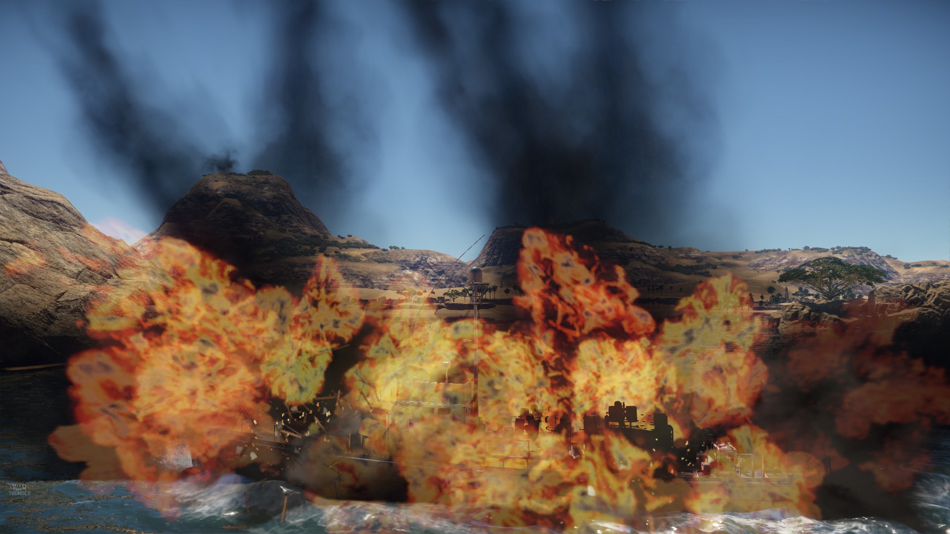 …aby mścić poległych kolegów i ich dopalający się okręt.