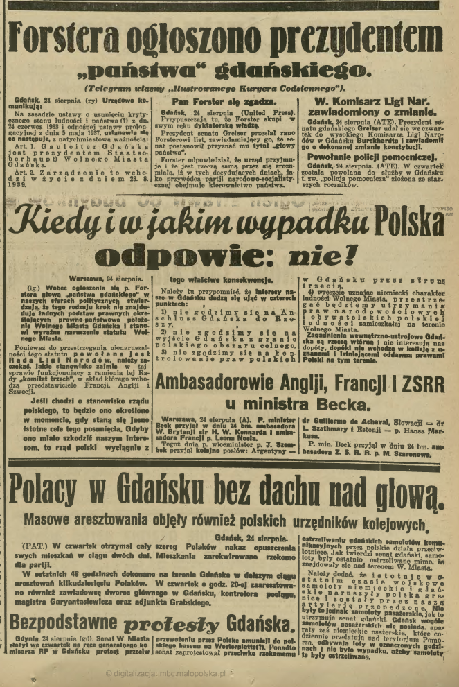 - Przyznam szczerze , że nie miałem czasu bliżej przejrzeć prasy , a ostatnie wiadomości o aneksji Gdańska nie wychodzą mi z głowy.