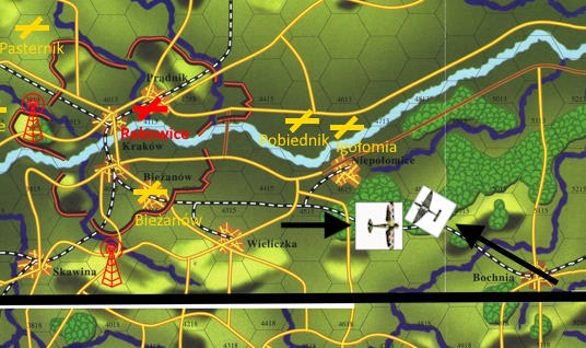 -Lekkie bombowce minęły Rolę (wysunięte stanowisko Skawina - dop. Finka), kierując się na wschód. Zapewne zaatakują Kraków od wschodu! Nawiążcie łączność z Rolą.