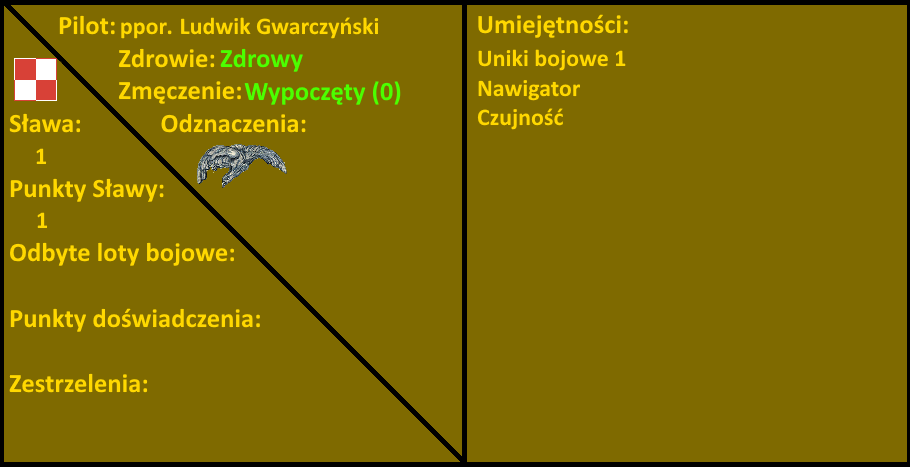ppor. Ludwik Gwarczyński, (LudwikG) - Zdrowy, zmęczenie 6 (lekko zmęczony) - EXP 6/4 Zestrzelenia 2 He-111