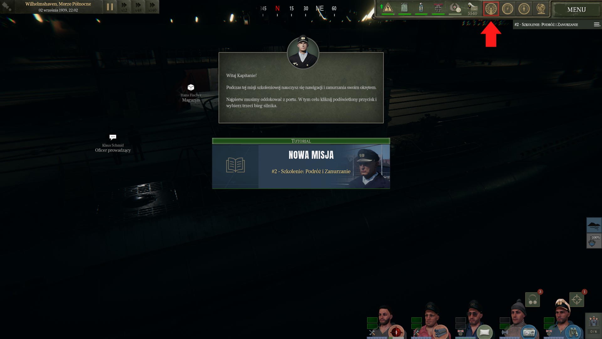 Jeszcze tego samego dnia wypłynęliśmy na pierwszy patrol. Ze względu na nieskończone szkolenie, na pokład przydzielono drugiego kapitana, który miał pomóc w w szybszym osiągnięciu gotowości bojowej [patrol z samouczka, dop. Finka]