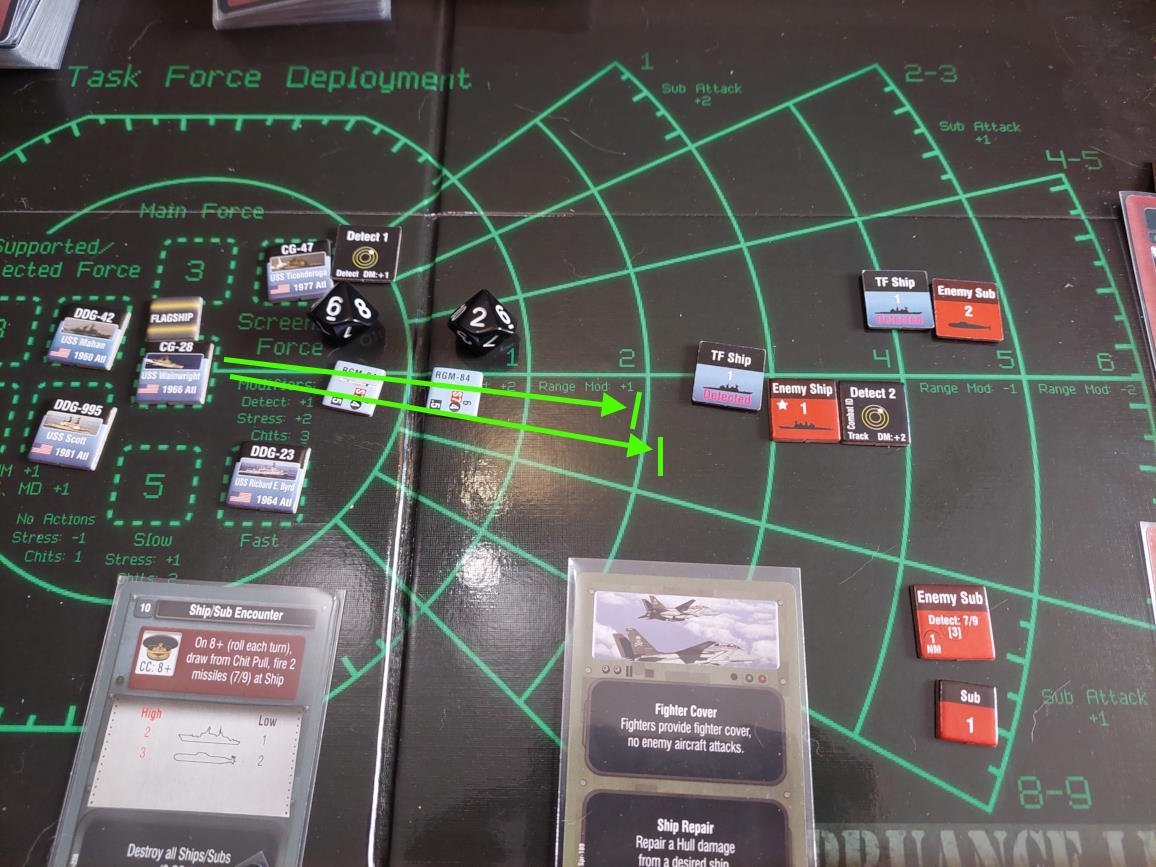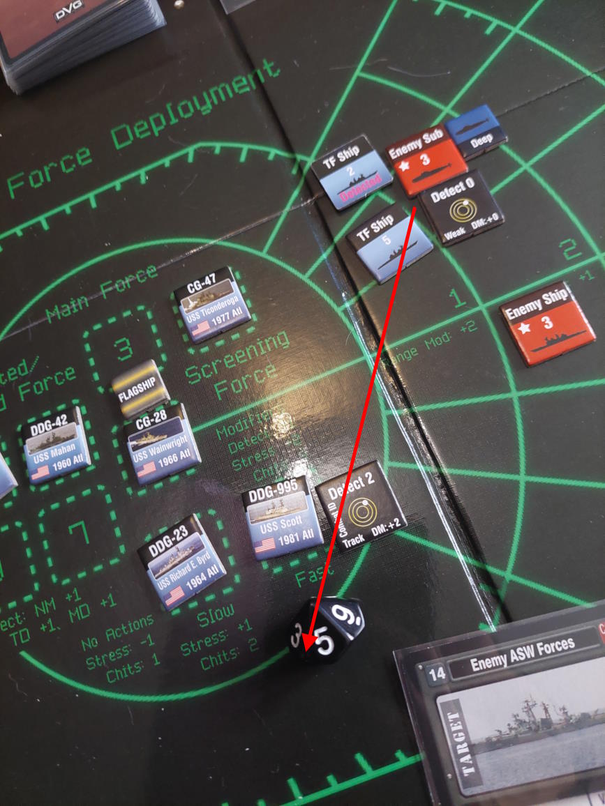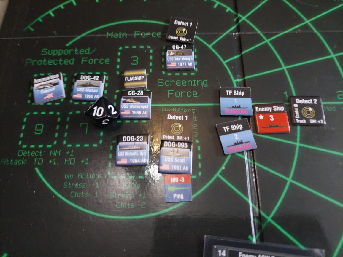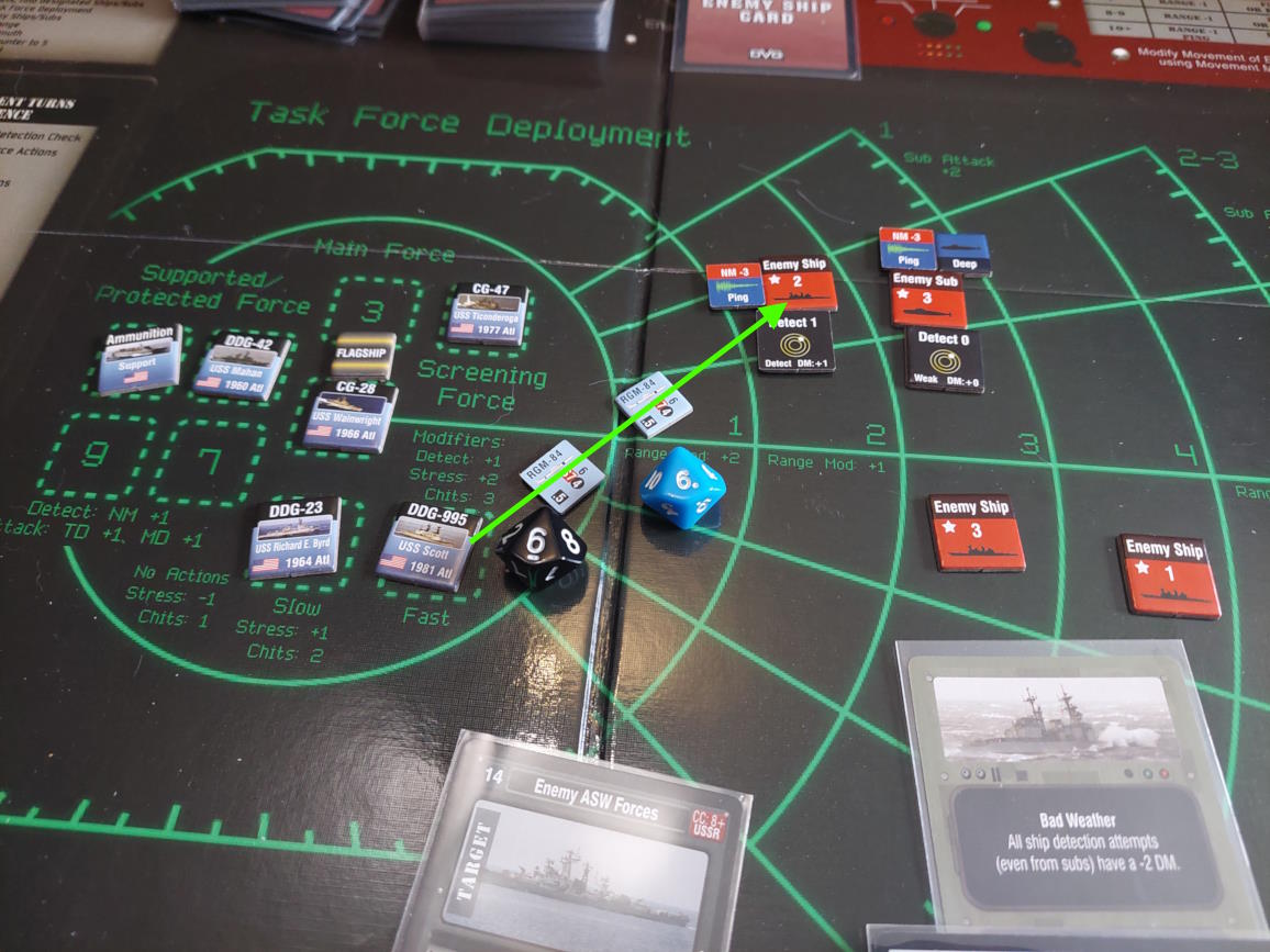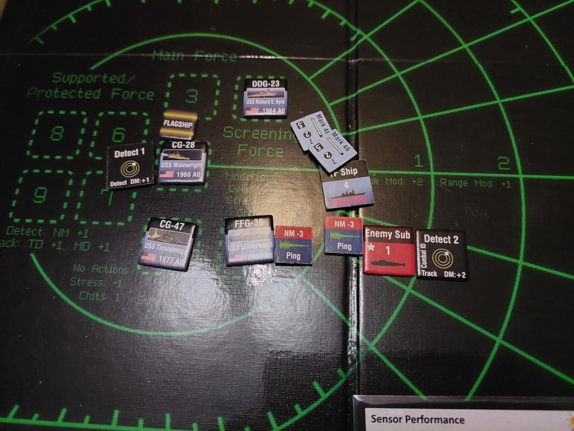 Okazał się to najgorszy pomysł na jaki wpadł kapitan. USS Ticonderoga wykrył okręt podwodny i wspierając się sonarem aktywnym uzyskaliśmy dokładny namiar na okręt podwodny klasy Foxtrot podchodzący pod nasz zespół. Mieliśmy jeszcze sporo torped i USS Scott prowadził zmasowany atak na foxtrota, zatapiając jednostkę.