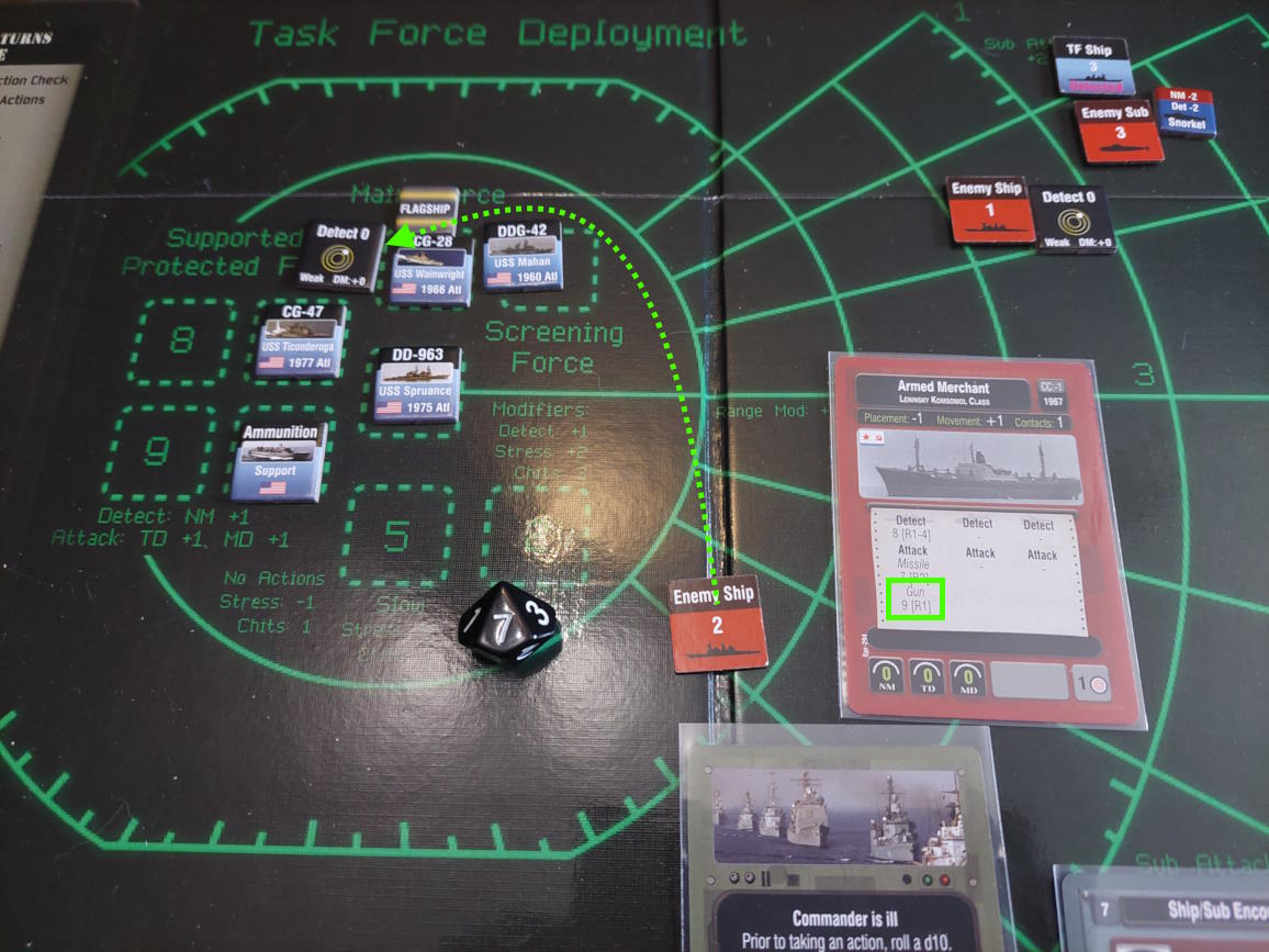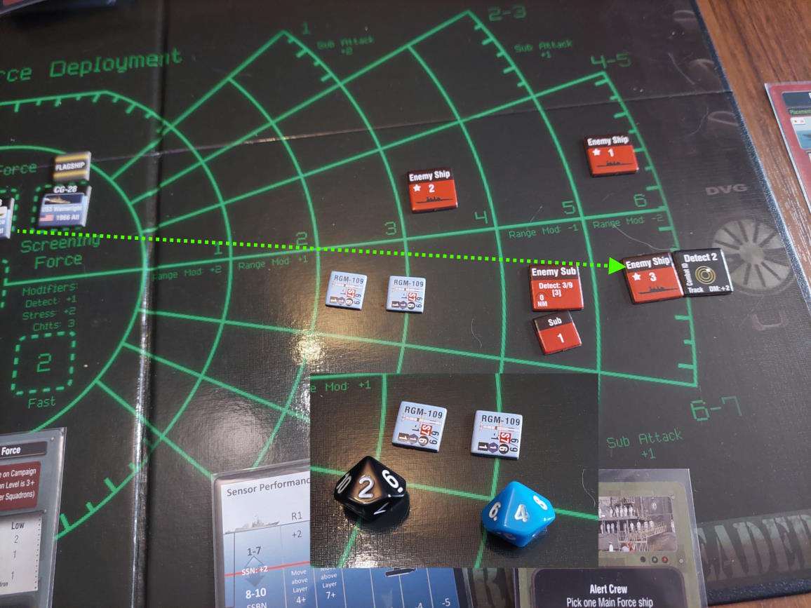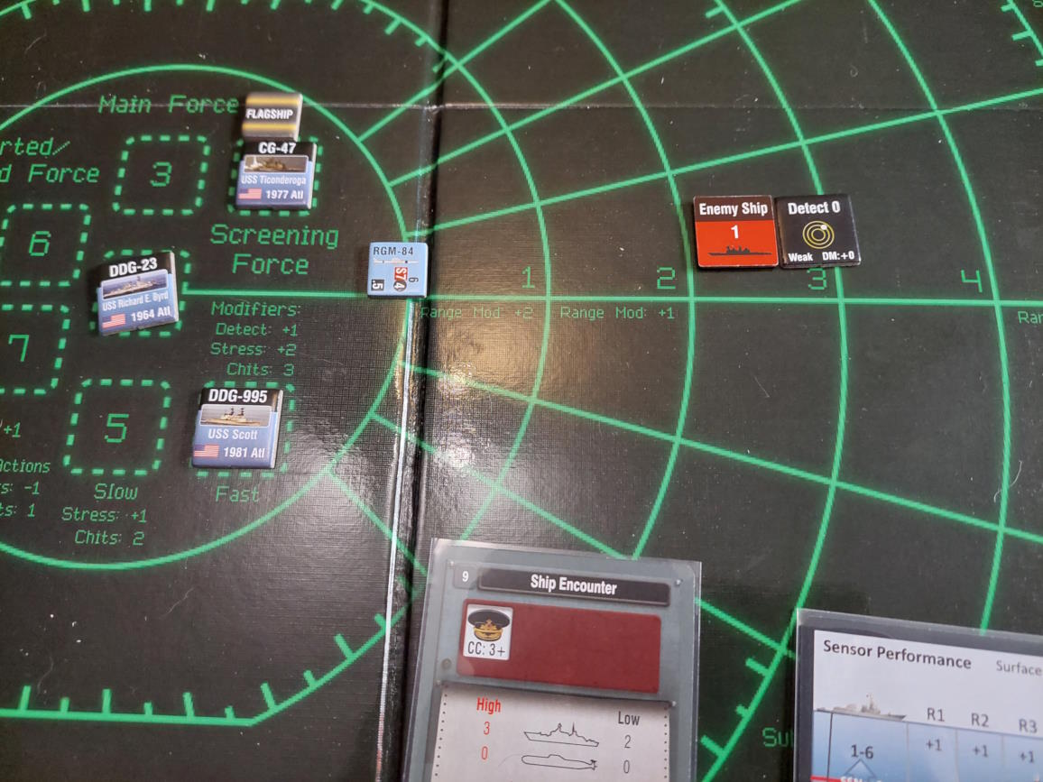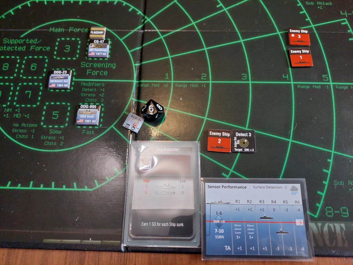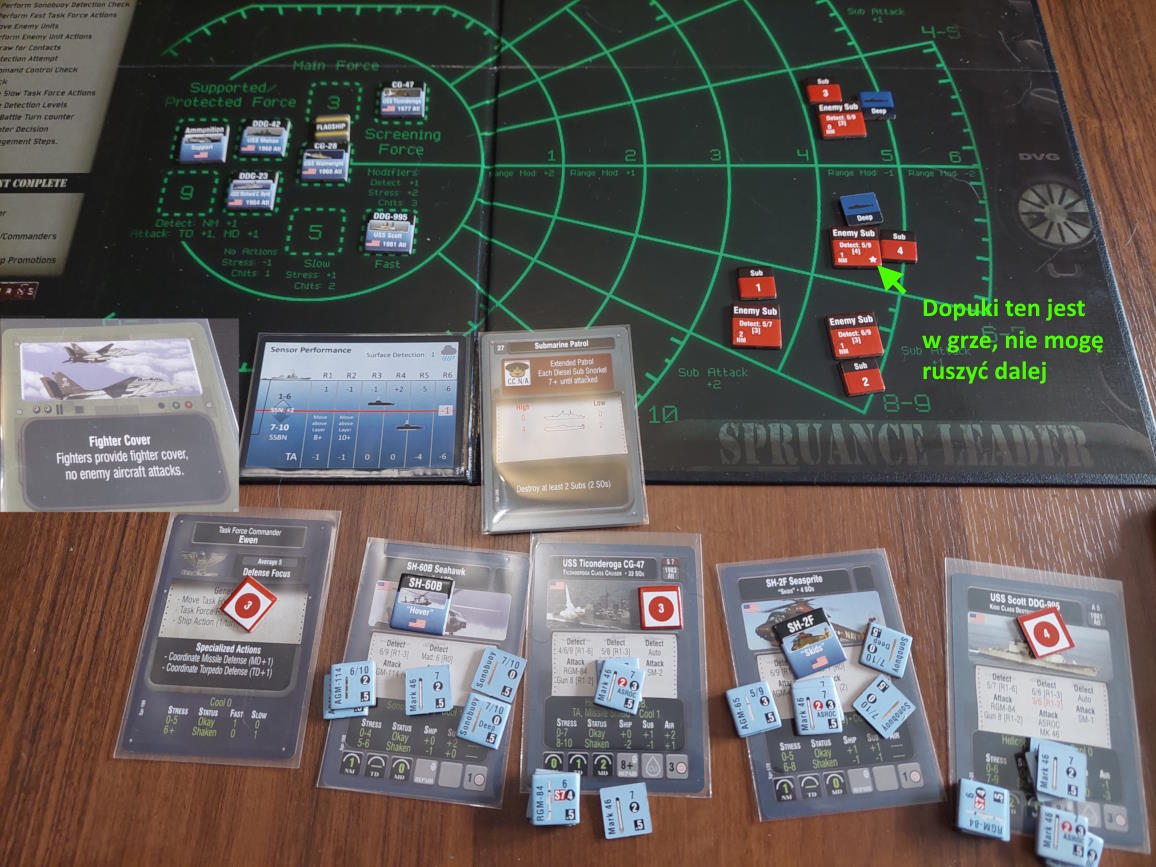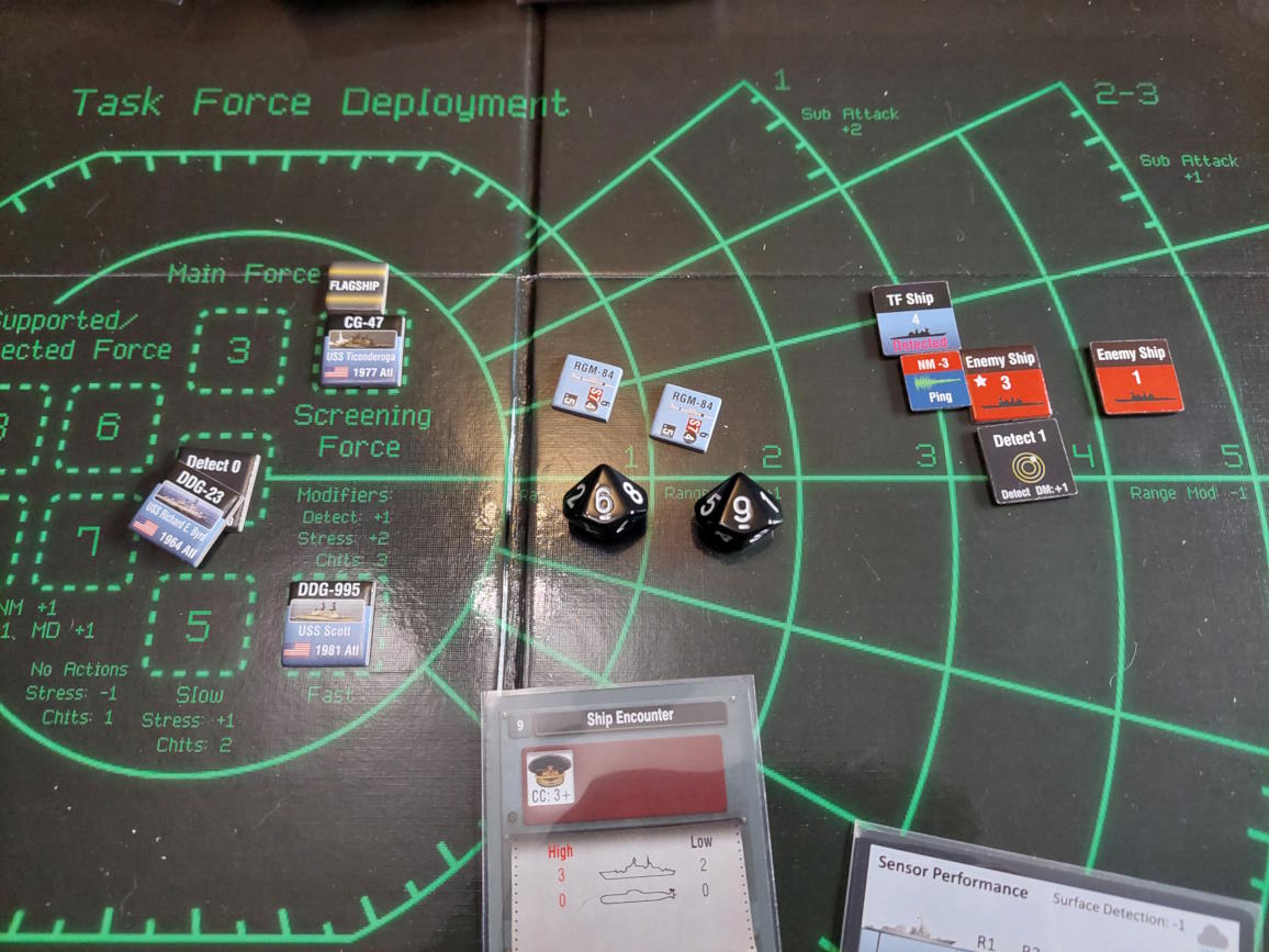 Okazał się to najgorszy pomysł na jaki wpadł kapitan. USS Ticonderoga wykrył okręt podwodny i wspierając się sonarem aktywnym uzyskaliśmy dokładny namiar na okręt podwodny klasy Foxtrot podchodzący pod nasz zespół. Mieliśmy jeszcze sporo torped i USS Scott prowadził zmasowany atak na foxtrota, zatapiając jednostkę.
