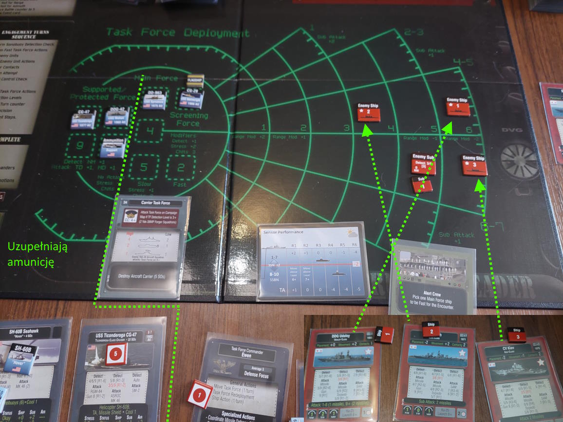 Szczęśliwie po wykryciu nieprzyjaciela, nasze śmigłowce wychwyciły miejsca, gdzie zgrupowały się okręty podwodne... Złapaliśmy wroga, gdy ten ładował baterie... Szczęśliwie naprzeciw nas stały tylko starsze, konwencjonalne okręty podwodne...