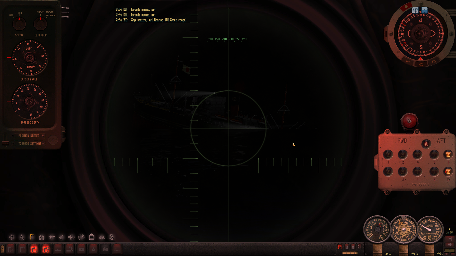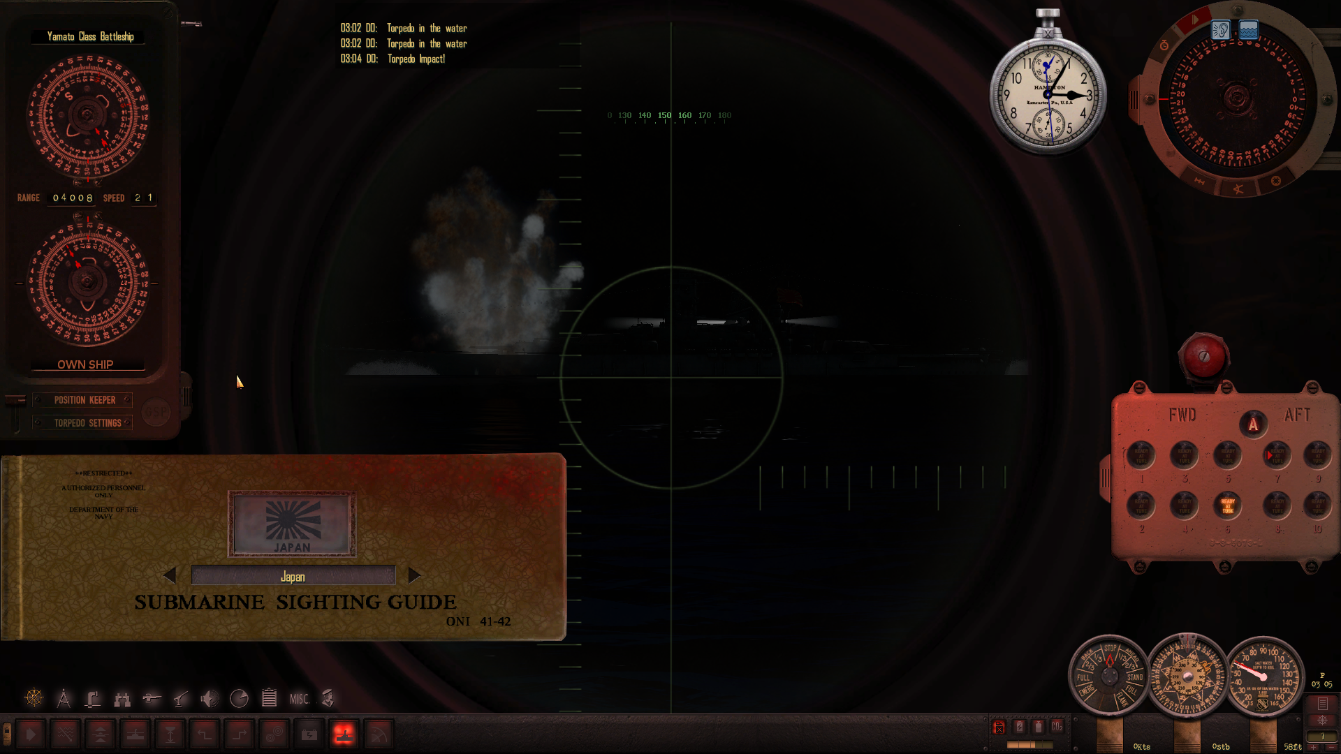 Nie zapominam o poprawce Posejdona, a XO prosi o ponowne potwierdzenie ustawienia głębokości torped na 30 stóp.
