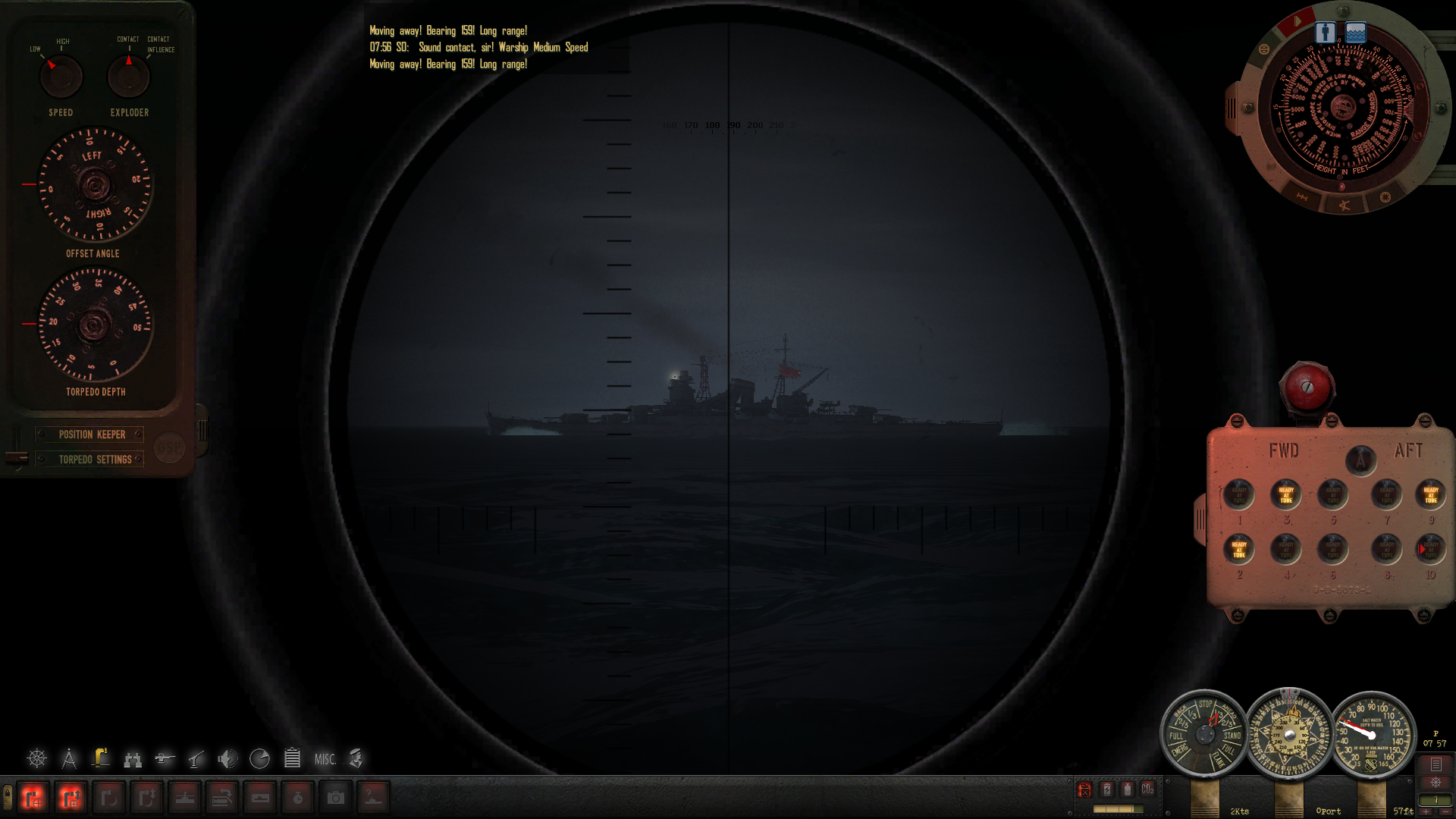 Ledwo odchodzimy od tonącego wraku radar melduje o kolejnym celu, znów na kursie z Taipej. Dochodzi siódma, ale skoro słońce późno zachodzi to późno i wschodzi. 2000 jardów do celu... i przeciwnik zmienia kurs. Niemożliwe żeby nas wykrył...
