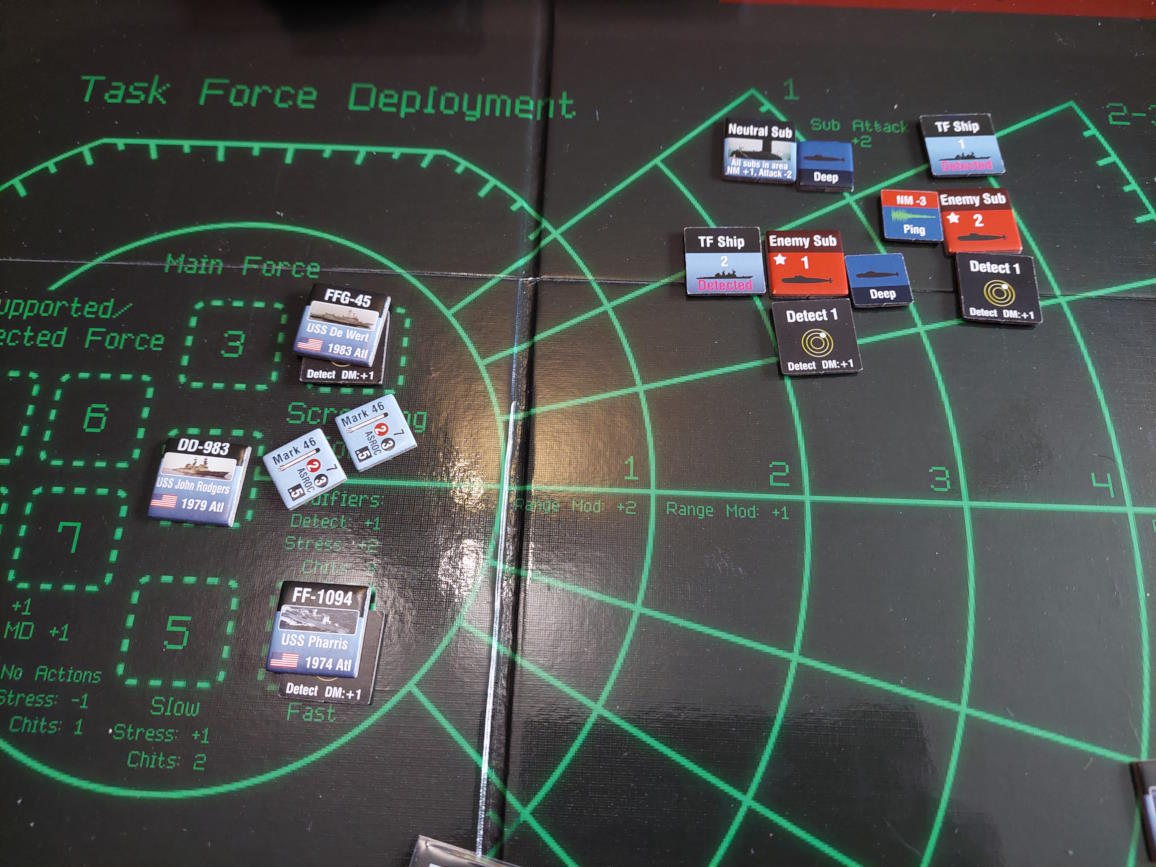 Załoga z USS Phariss posiadająca ogromne doświadczenie w obsłudze sonaru wykryła okręt podwodny przed zespołem i w to miejsce wysłano helikopter.