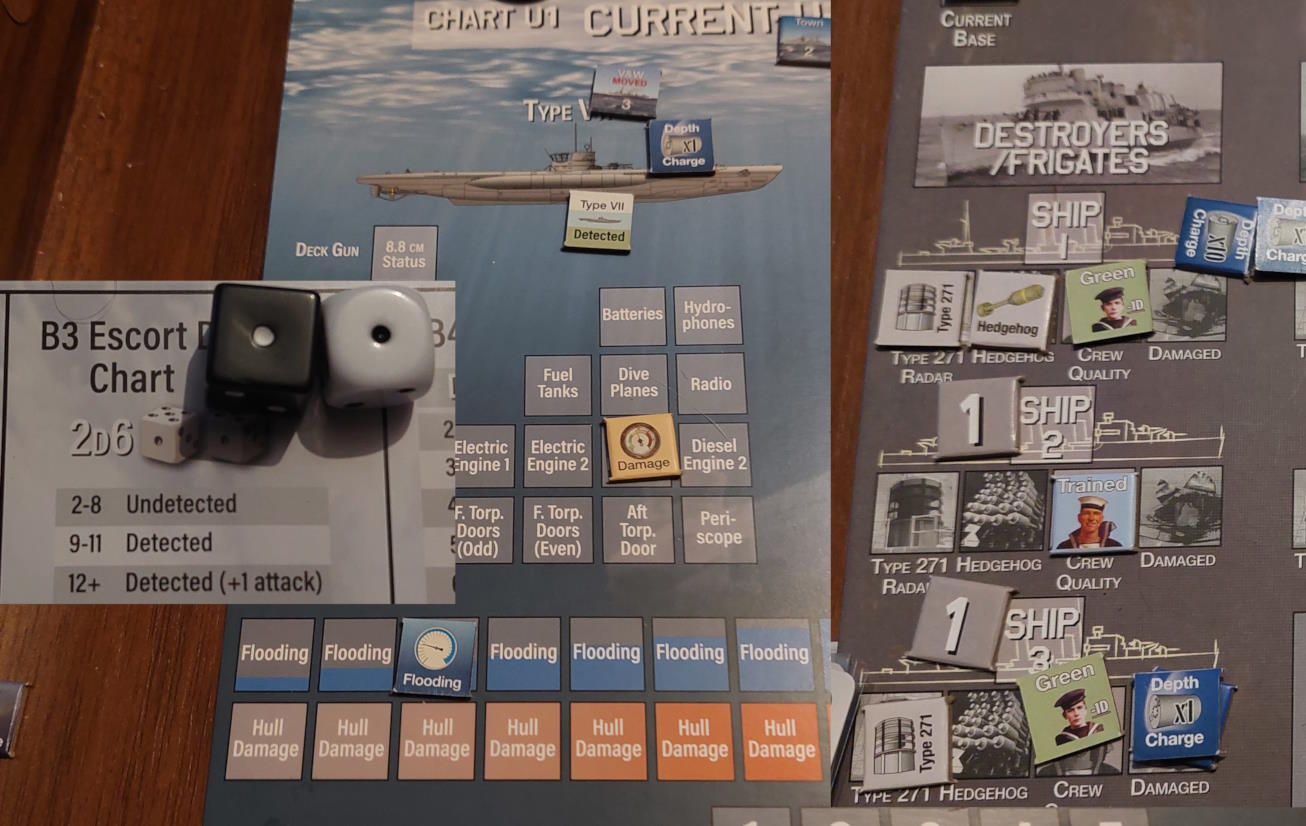 Za dnia samoloty odnalazły tego U-Boota i zrzuciły na niego bomby. Uszkodzony U-Boot musiał zawrócić do Francji.