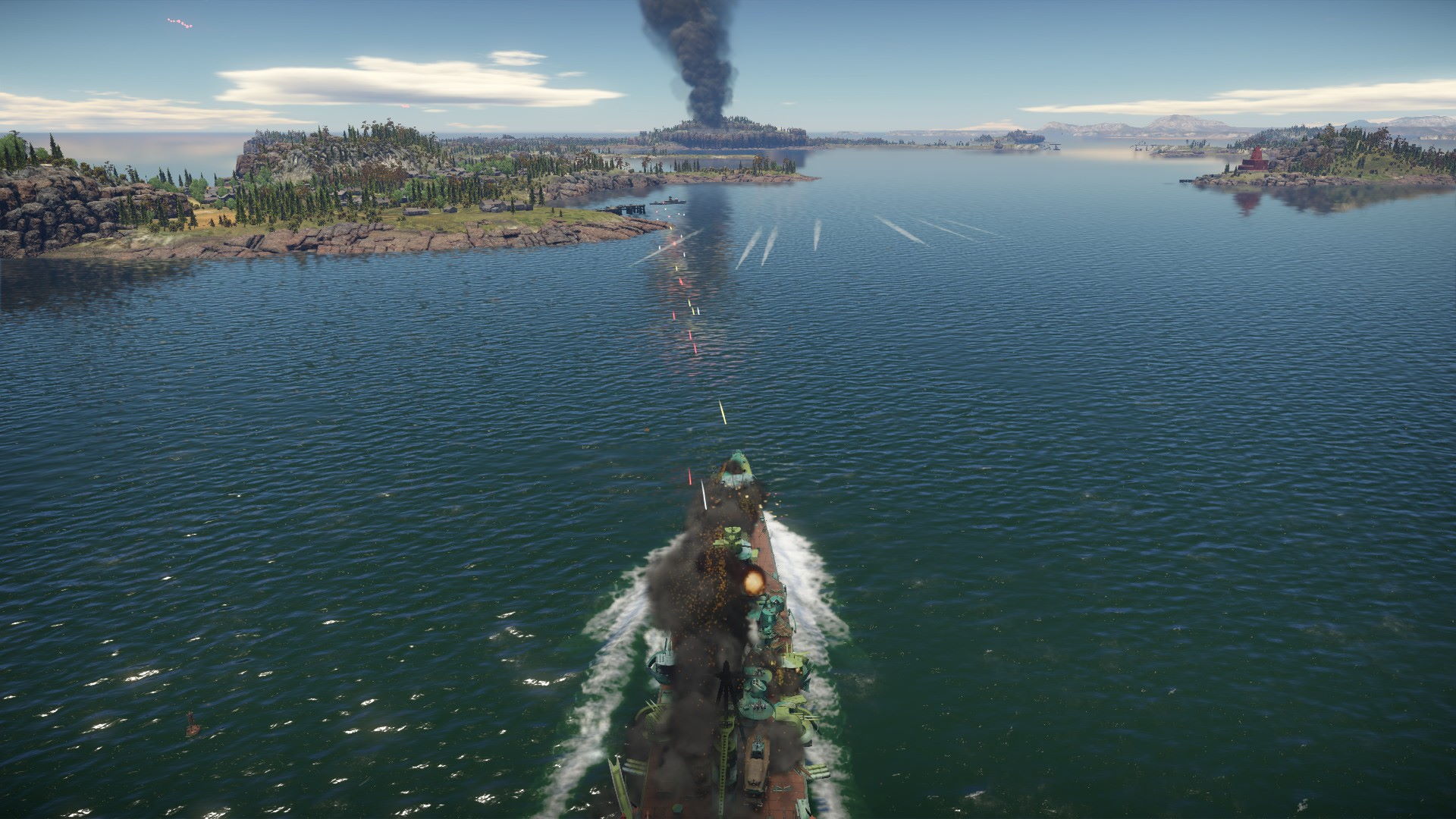 40mm działka otworzyły ogień w mostek wrogiego okrętu. Wprowadzenie zamętu tam teraz, było naszą jedną szansą...