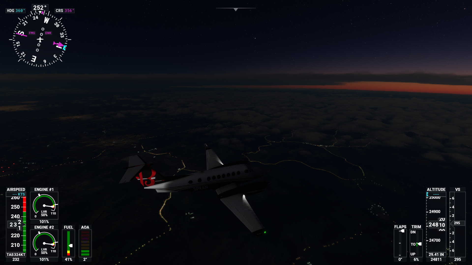 -VATSIM. Zacząłem sobie tam latać. Fajnie tak z kontrolerami na żywo polatać. Fabio zrobił kiedyś stream z takim jednym Garym z UK co był kontrolerem na bardzo spokojnym obszarze. Jakieś wysepki Jersey między UK i Francją żeby jak ktoś chce po lekku wejść w świat VATSIM to bez dużego ruchu i z kimś znajomym kto wie, że będą głównie piloci robiący pierwszy lot no to wziąłem i poleciałem :D Poza mną się ino jeden jeszcze odważył :lol No i fajnie było, będę latał często. No ale żeby korzystać z większych lotnisk, które zwykle mają kontrolerów lotu to trzeba mieć raczej szybszy samolot. Zwykle to większe odrzutowce, ale taki Beechcraft King Air 350i też może być jak nie będzie masywnego ruchu :)