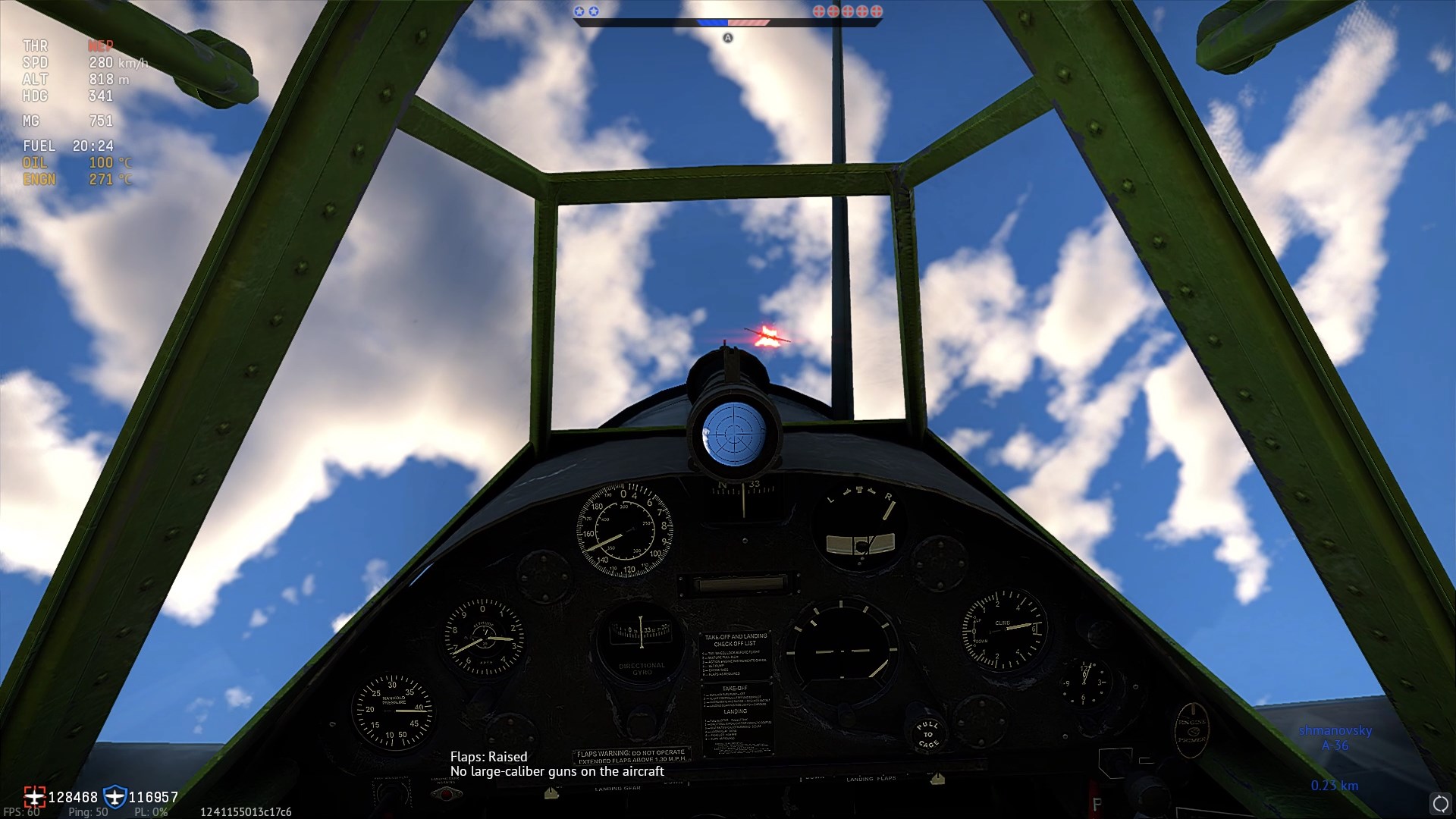 Gra tym razem była bardzo przyjaźnie nastawiona do mnie - zaliczała trafienia nawet przy dużych odległościach... ...stawałem na głowie - zaliczała trafienia nawet w takich sytuacjach: ... i następny przeciwnik za chwilę zaliczy glebę... Wchodziło wszystko - Bf 110 zwykle pancerna - płonie... I Stukas - krótka seria ...