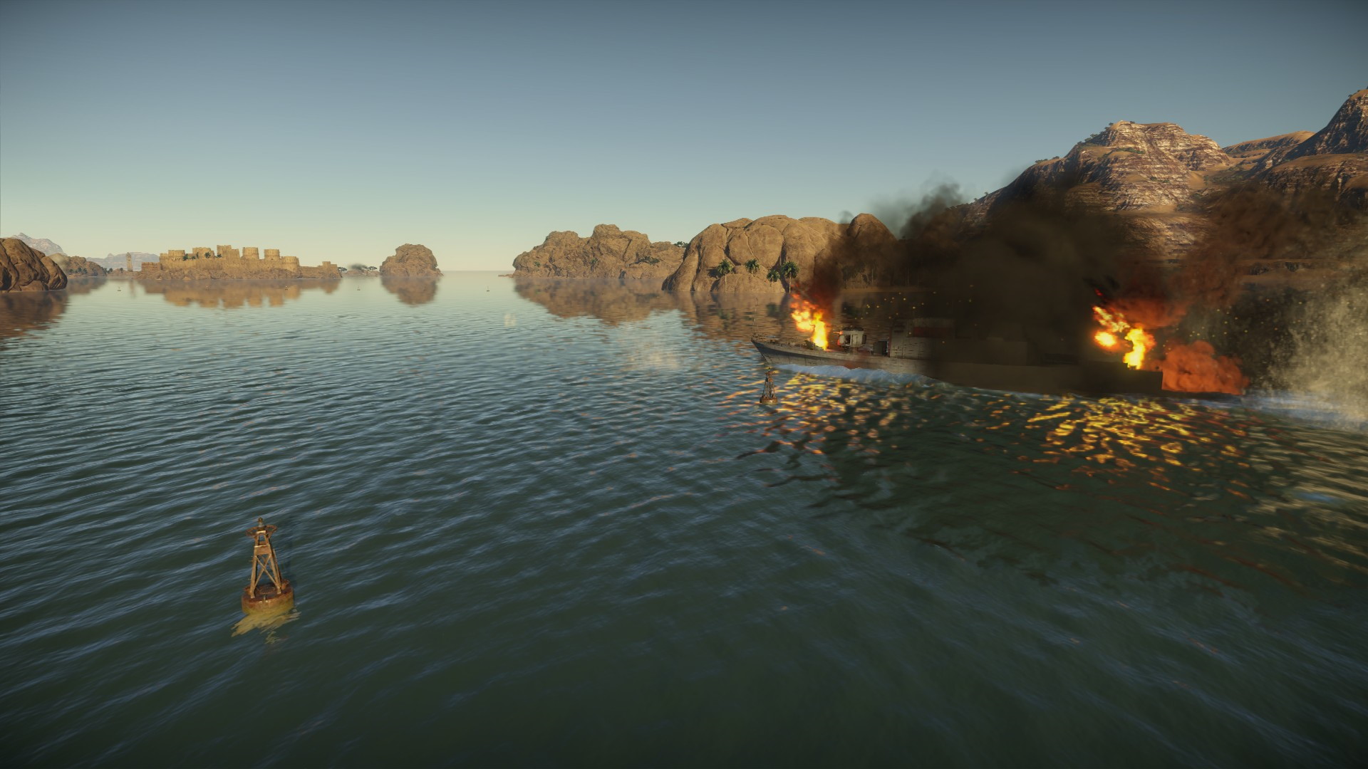 Niestety, gdy zbliżałem się do boi, zza skał wyszły aż dwa niszczyciele mierzące we mnie, a i trzeci wyłaniał się zza skał...